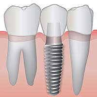 A dental implant (also known as an endosseous implant or fixture) is a surgical component that interfaces with the bone of the jaw or skull to support a dental prosthesis such as a crown, bridge, denture, facial prosthesis or to act as an orthodontic anchor. The basis for modern dental implants is a biologic process called osseointegration where materials, such as titanium, form an intimate bond to bone. The implant fixture is first placed, so that it is likely to osseointegrate, then a dental prosthetic is added. A variable amount of healing time is required for osseointegration before either the dental prosthetic (a tooth, bridge or denture) is attached to the implant or an abutment is placed which will hold a dental prosthetic.